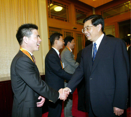 2003年7月25日,胡錦濤在中南海懷仁堂親切接見蔣錫培