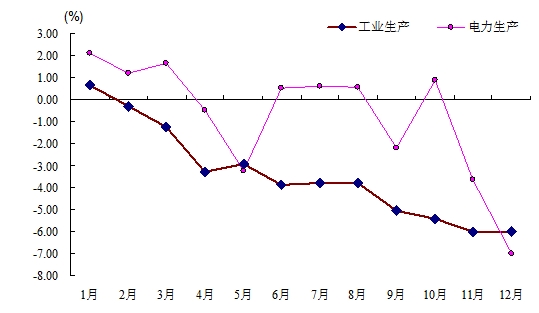 圖1 美國(guó)2001年各月工業(yè)生產(chǎn)增速與電力生產(chǎn)同比增速