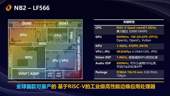 中國,深圳——智慧工業(yè)物聯(lián)芯片解決方案的引領(lǐng)者,同時也是聚焦研發(fā)基于RISC-V開源指令集架構(gòu)SoC芯片產(chǎn)品的高科技公司躍昉科技于8月16日在深圳舉辦“躍昉智慧物聯(lián)芯,助力雙碳新基建”新品發(fā)布會暨媒體溝通會,并于會上重磅發(fā)布全球首款定位高端工業(yè)級應(yīng)用的可量產(chǎn)12nm RISC-V SoC芯片NB2及其配套板卡產(chǎn)品,預(yù)計Q4量產(chǎn)。四核1.8G的CPU,算力超過32000 DMIPS,850MHz 的GPU,1.4GHz NPU,支持Linux+ RTOS + OpenAMP異構(gòu)OS運行環(huán)境,這款64位邊緣智能處理器NB2用一系列指標(biāo)將性能拉滿,真正打開中國工業(yè)高端芯片自主化格局。