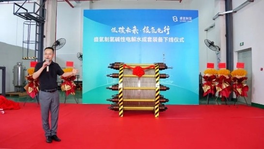8月22日,盛氫制氫堿性電解水成套裝備下線儀式在盛氫制氫設備公司舉行。佛山市南海區發改局總經濟師梁柱榮、佛山市高新區南海園副局長何俊麒、南海區里水鎮黨委委員周可、廣東省燃料電池汽車示范城市群領導小組工作專班、佛山市環境與能源院院長趙吉詩博士、鴻基創能有限公司董事總經理鄒渝泉博士、國富氫能戰略總監魏蔚博士、中氫綠源董事長王德新,以及昇輝科技董事長李昭強、昇輝新能源董事長張毅、昇輝控股副總裁文真、盛氫制氫總經理吳瑾等領導嘉賓出席下線儀式,現場還有合作伙伴、媒體等40人參加。