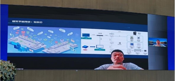 圖2. 中國電科院能源互聯網技術研究院姚國風講解基于NB2的建筑降碳方案以及相應智能邊緣網關Demo展示