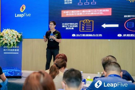 圖3. 摩聯科技聯合創始人兼CTO許剛介紹與躍昉就數據安全(機密計算)的合作以及基于NB2方案的機密計算卡Demo展示