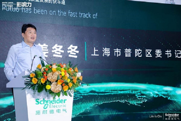 活動現場,上海市普陀區委書記姜冬冬在致辭中表示:“近年來,普陀區主動服務上海‘五個中心’建設大局,同時‘中華武數’科創布局加快構建、四大重點產業壯大成勢,均為企業發展提供了廣闊的空間。我們期待,以施耐德電氣為代表的企業,在未來能夠持續發揮‘龍頭’和‘鏈主’作用,促進產業鏈上下游創新主體的深入交流、交往、交融,加快全面創新,持續推動各類生產要素在普陀區的配置,共同打造‘中華武數’科創布局。”