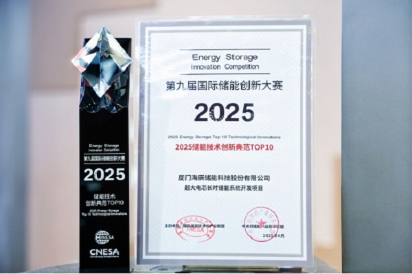 4月10日,第13屆儲能國際峰會暨展覽會(ESIE2025)在北京隆重開幕,同期舉辦第九屆國際儲能創(chuàng)新大賽頒獎典禮,海辰儲能基于超大電芯長時儲能系統(tǒng)開發(fā)項目和儲能預(yù)制艙及儲能系統(tǒng),分別摘獲“2025儲能技術(shù)創(chuàng)新典范TOP10”和“2025儲能專利創(chuàng)新典范TOP5”兩項大獎。