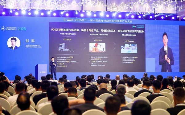 會議期間,華為智能充電網絡全球業務副總裁彭鵬受邀發表《兆瓦超充技術加速商用車電動化進程》主題演講。依托華為數字能源在充電網絡產業的深入研判,系統預測以重卡物流為代表的新一波汽車電動化浪潮下,構建交能融合型充電基礎設施是未來高質量發展的關鍵。2025年開始電動重卡將憑借購置運營成本及減排效果迎來長達十年以上強勁的市場表現,華為兆瓦超充可徹底打通產業斷點,以車型高兼容、運營易維護、建站省占地等多重優勢,全面領先換電等技術路線。