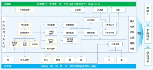 中裕智慧能源以生物質氣化為主線,耦合光伏、風電、熱泵、儲能、余熱回收等技術,實現熱、電、炭、氫、冷、暖等多種能源供應及調配,打造零碳工廠、零碳園區,助力城市綠色轉型。