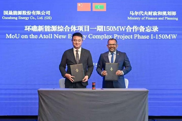 根據雙方簽署的有關協議,國晟能源股份有限公司將在馬爾代夫打造環礁新能源綜合體項目。其中一期新能源電站投資金額約1.1億美金,分別在六個環礁及大馬累地區的28個島嶼上建設總規模150MW的光儲一體化電站和相關產業項目。項目將采用國晟擁有自主知識產權的海洋專用組件,配合高分子邊框和固態電池儲能及智能電網系統,打造海島國家的新型微電網,讓“中國智造”的核心技術扎根馬爾代夫,為環礁區域提供穩定、清潔的電力支持。后續,國晟還計劃將新能源游艇、光伏農業、智慧漁業等產業融入馬爾代夫本地發展,打造“環礁新能源+多元產業”的合作生態,助力馬爾代夫實現產業協同可持續發展。